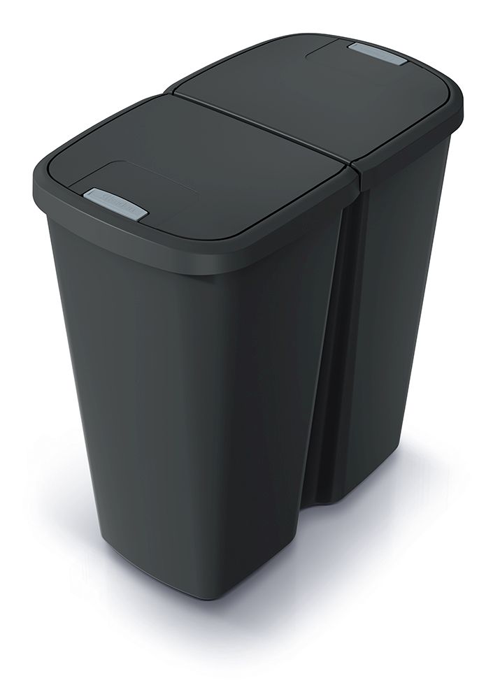 Odpadkový kôš COMPACTA Q DUO - objem: 45 l, farba: recyklovaná čierna s čiernym vekom