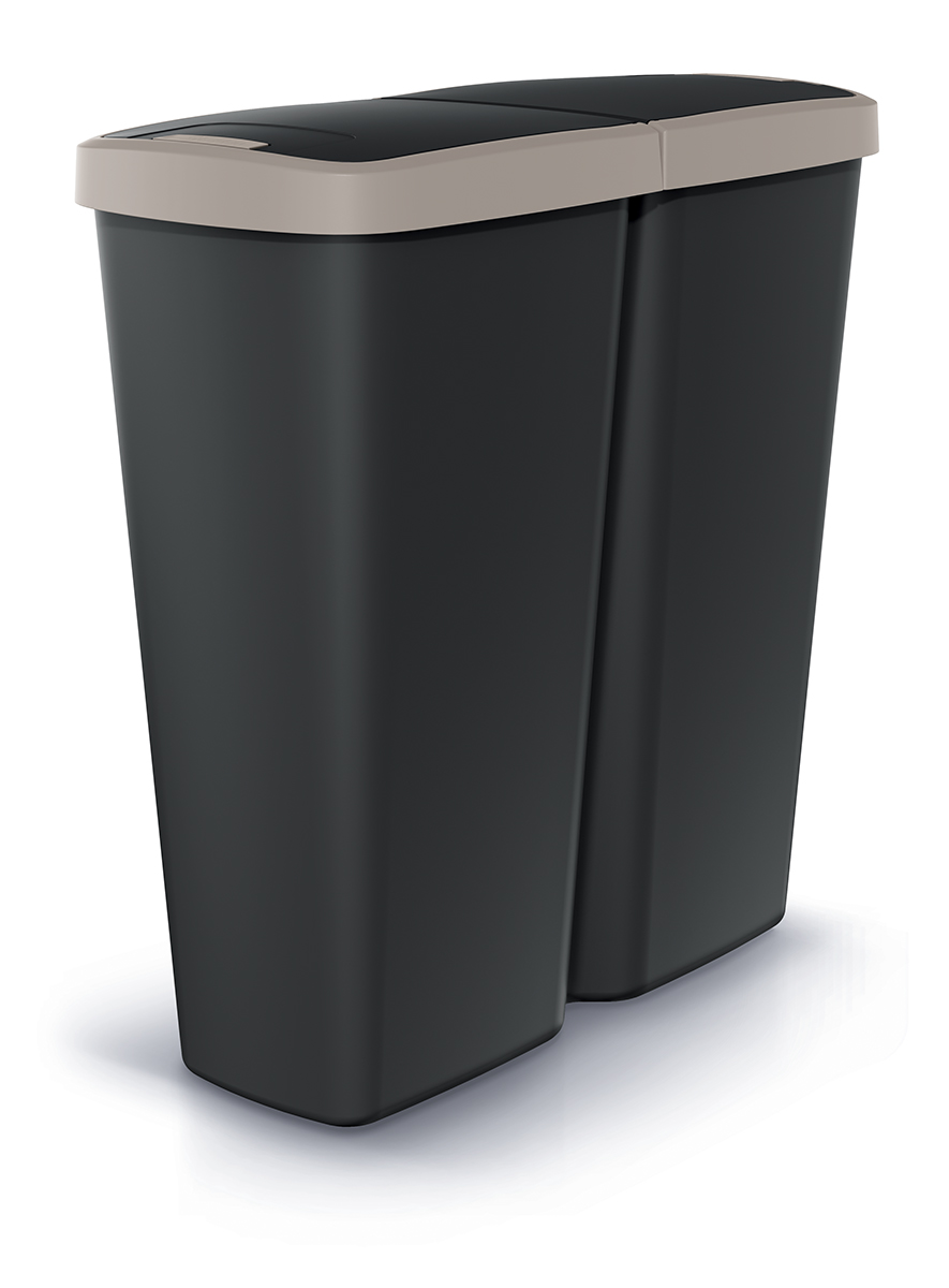 Odpadkový kôš COMPACTA Q DUO - objem: 50 l, farba: čierna so svetlohnedým vekom