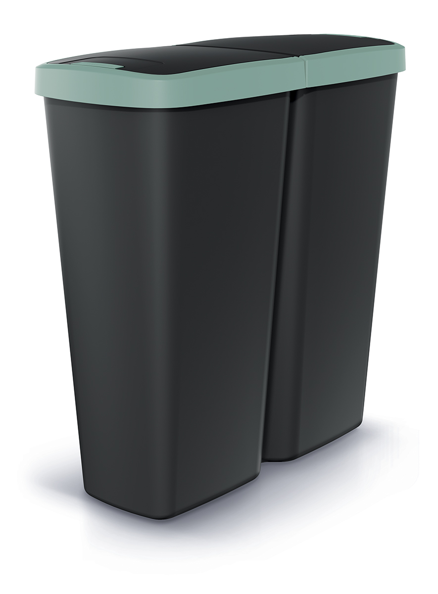 Odpadkový kôš COMPACTA Q DUO - objem: 50 l, farba: čierna so svetlozeleným vekom