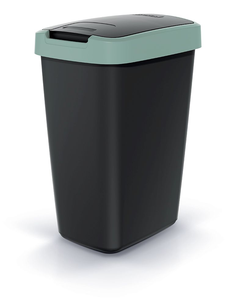 Odpadkový kôš COMPACTA Q FLAP - objem: 12 l, farba: čierna so svetlozeleným vekom