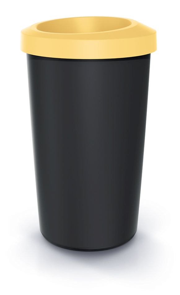 Odpadkový kôš COMPACTA R DROP - objem: 35 l, farba: recyklovaná čierna so svetložltým vekom