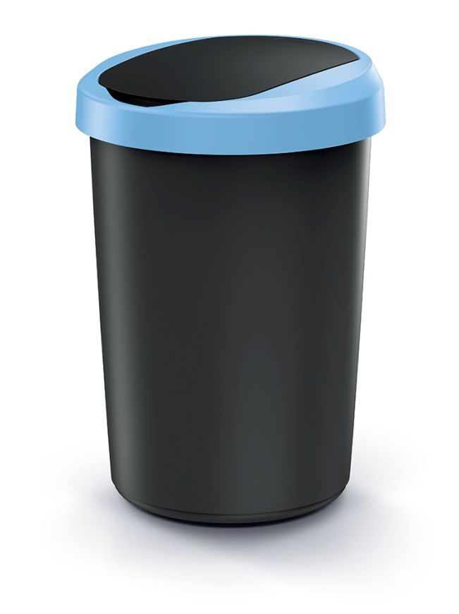 Odpadkový kôš COMPACTA R FLAP - objem: 40 l, farba: recyklovaná čierna so svetlomodrým vekom,