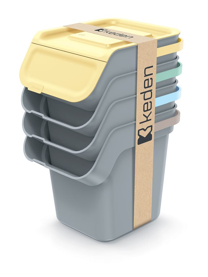 Odpadkový kôš KADDI Q SET s filtrom - objem: 4x20 l, farba: svetlosivá