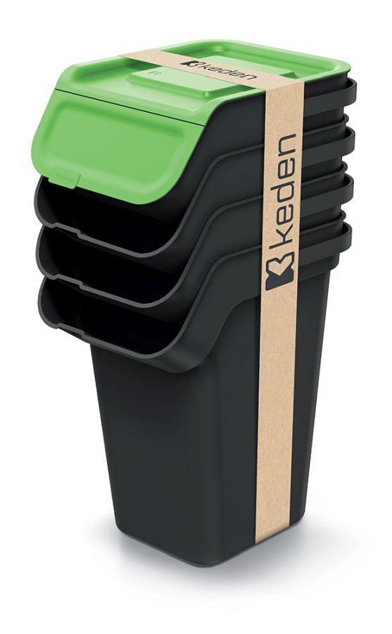 Odpadkový kôš KADDI Q SET s filtrom - objem: 4x25 l, farba: recyklovaná čierna