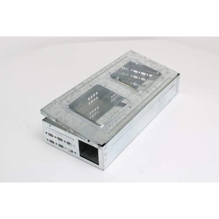 : AgrofortelPasca na krysy - domčeková obdĺžniková s priehľadným krytom, 2 vstupy, s preklápacou lávkou. Krysa alebo myš vlezie dovnútra, za ňou sa zatvoria plechové padacie dvierka.