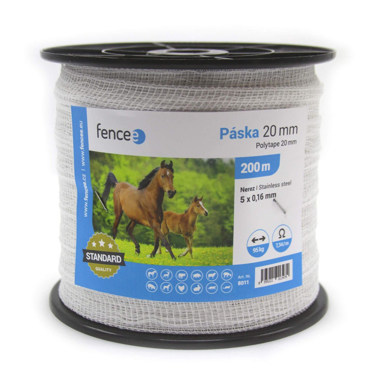 Páska pre elektrický ohradník, priemer 20 mm, 200 m, biela