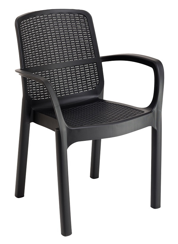 Plastová záhradná stolička NUMANA s podrúčkami - pohodlie, pevnosť a štýl v jednom! Ľahkosť a pevnosť Napriek nízkej hmotnosti je kreslo NUMANA veľmi pevné a stabilné. Vďaka tomu ho môžete ľahko premiestniť a umiestniť kamkoľvek potrebujete. ELEGANTNÝ DIZAJN Operadlo a sedadlo kresla sú elegantne vyhotovené v obľúbenej imitácii ratanu, vďaka čomu dodajú vašej záhrade alebo terase moderný a štýlový vzhľad. ĽAHKÁ ÚDRŽBA Materiál tohto kresla je vyrobený z pevného recyklovaného plastu, čo zaručuje odolnosť voči nepriaznivým poveternostným podmienkam a UV žiareniu. Údržba je rýchla a jednoduchá, stačí ho utrieť vlhkou handričkou. SKLADATEĽNOSŤ Stolička sa dá ľahko zložiť a poskladať, čo z nej robí praktickú voľbu na mimosezónne uskladnenie. FAREBNÁ KONTROLA Grafitová povrchová úprava stoličky NUMANA je univerzálna a doplní mnohé stoly alebo súpravy v tejto farbe, čo vám umožní vytvoriť elegantné a vkusné vonkajšie prostredie. Kreslo NUMANA - kombinácia pohodlia, funkčnosti a štýlového dizajnu. Vytvorte si vlastný relaxačný raj v záhrade s naším kreslom NUMANA!