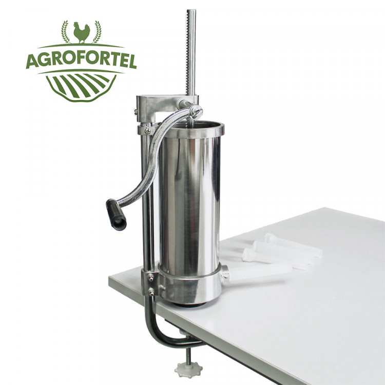 : AgrofortelKvalitné plnička (narážačka) klobás, jaternic, párkov a špekáčikov s objemom až 3,5 kg pre rýchlu a jednoduchú prácu. Telo plničky je vyrobené z nerezovej ocele, ktorá umožňuje čistú prácu a ľahké čistenie prístroja.