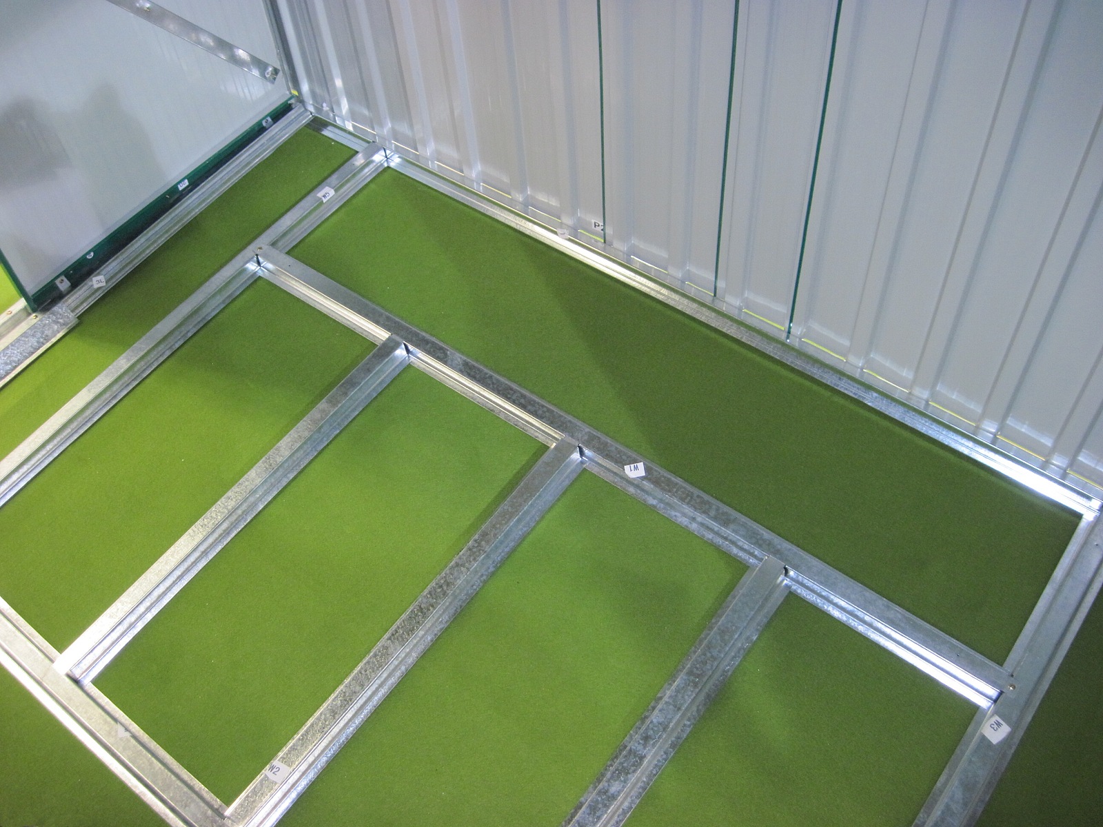 Plechová podlahová základňa pre záhradný domček Maxtor 1012. Vyrobené z pozinkovaných oceľových profilov (elektrolytické zinkovanie).