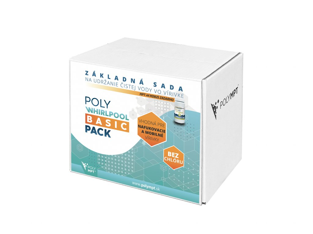 POLY WHIRLPOOL BASIC PACK je určený pre nafukovacie, mobilné vírivky a drevené kade. Obsahuje bezchlórovú chémiu určenú na starostlivosť o vírivú vaňu pri je napustení a počas sezóny.