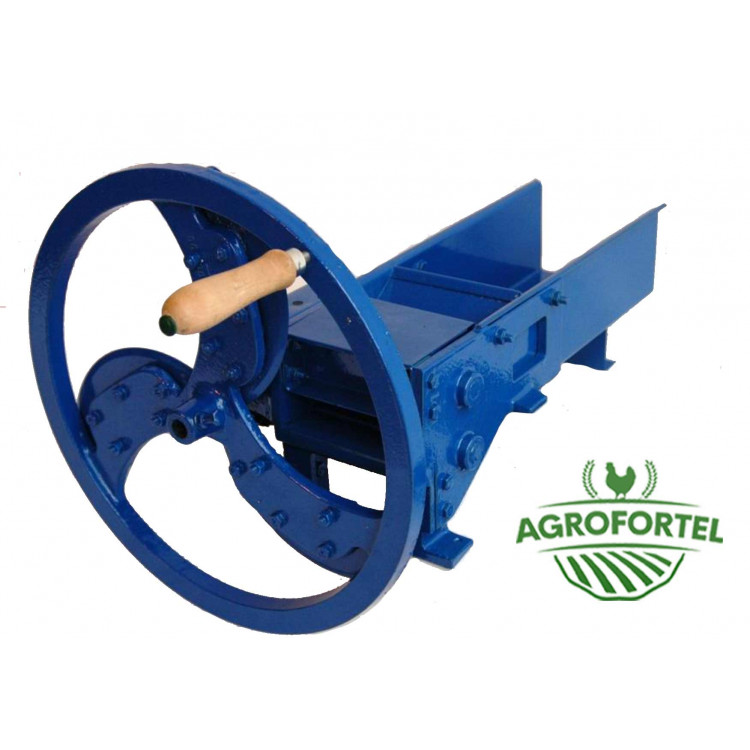 : AgrofortelPOUŽITÉ, PLNE FUNKČNÝ TOVAR. Rezačka na žihľavy a krmoviny trojnožová na ručný pohon obežného kolesa.