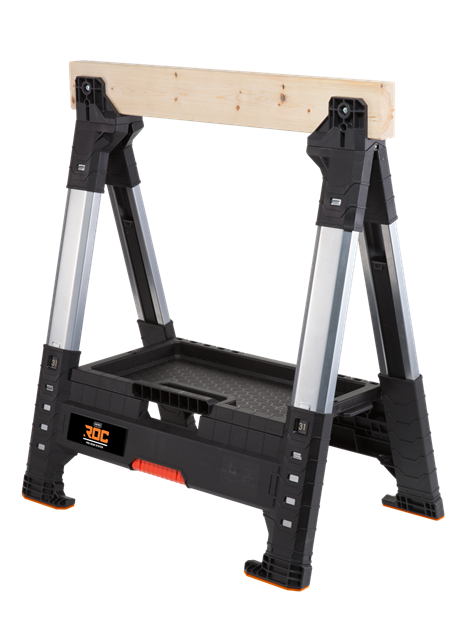 : KeterPracovná koza s nastaviteľnou výškou od 80 do 100 cm. Výšku nôh je možné nastaviť individuálne.