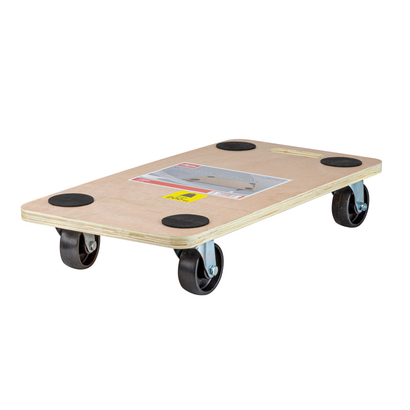 : DEMAPojazdná plošina vhodná na transport nábytku, preglejková doska, výrez na jednoduché prenášanie, 4 kolieska s klzným ložiskom otočné o 360° z PP, s penovou gumovou podložkou.