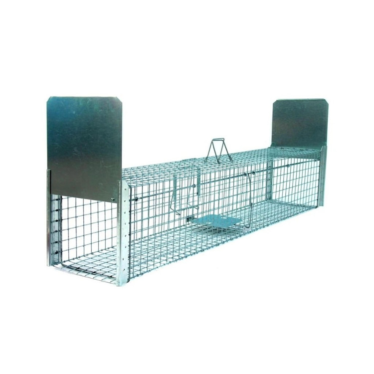 Táto vysokokvalitná pozinkovaná pasca je vybavená ochrannou vrstvou proti korózii a disponuje dvoma vstupmi k umiestnenej návnade. Je skonštruovaná s robustným uzatváracím systémom brány a 3,3 mm hrubým drôtom , čo zaisťuje jej skvelú odolnosť a životnosť.