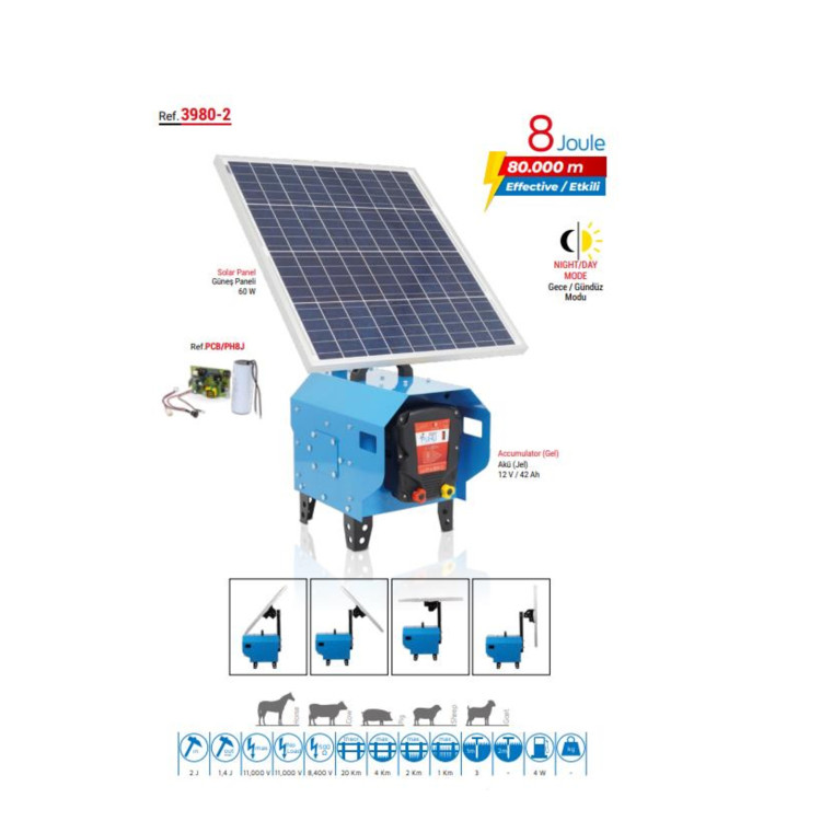 PUHU set pre elektrický ohradník 8J Akumulátor gél (12V/42Ah) + solárny panel 60W