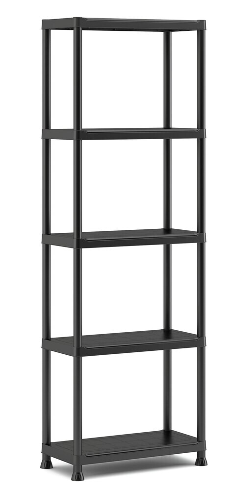 : KeterRegál PLUS s 5 policami je ideálnym riešením na upratovanie a organizáciu vašej garáže, pivnice alebo podkrovia. Tento regál má pevnú a odolnú konštrukciu a vďaka vyvýšeným nohám pomáha udržať uložené predmety mimo podlahy.
