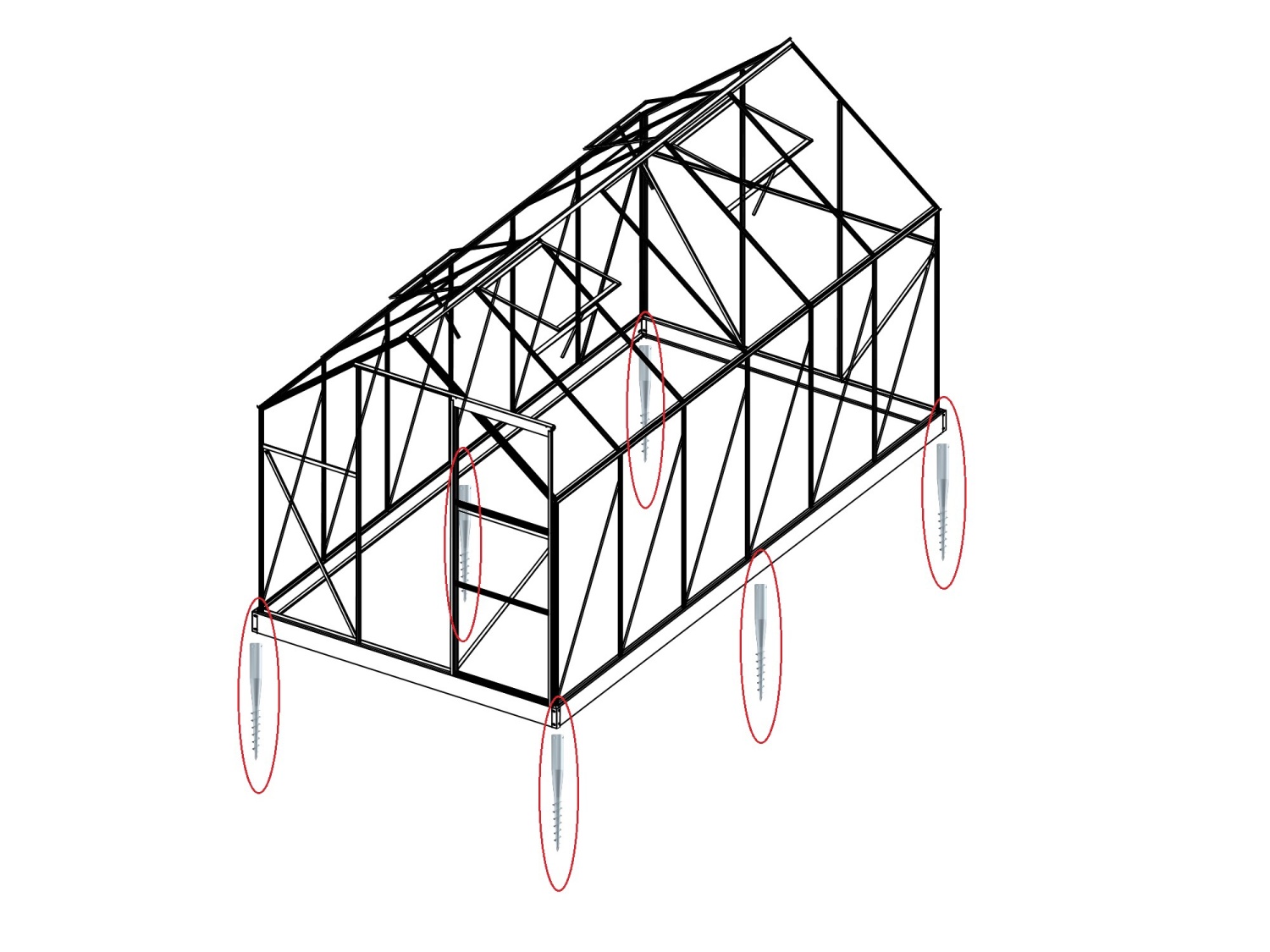 Univerzálny kotviaci systém vhodný pre väčšinu typov skleníkov. Jednoducho, bezpečne a relatívne rýchlo ukotvíte skleník k zemi pomocou systému zemných skrutiek s dĺžkou 500 mm.