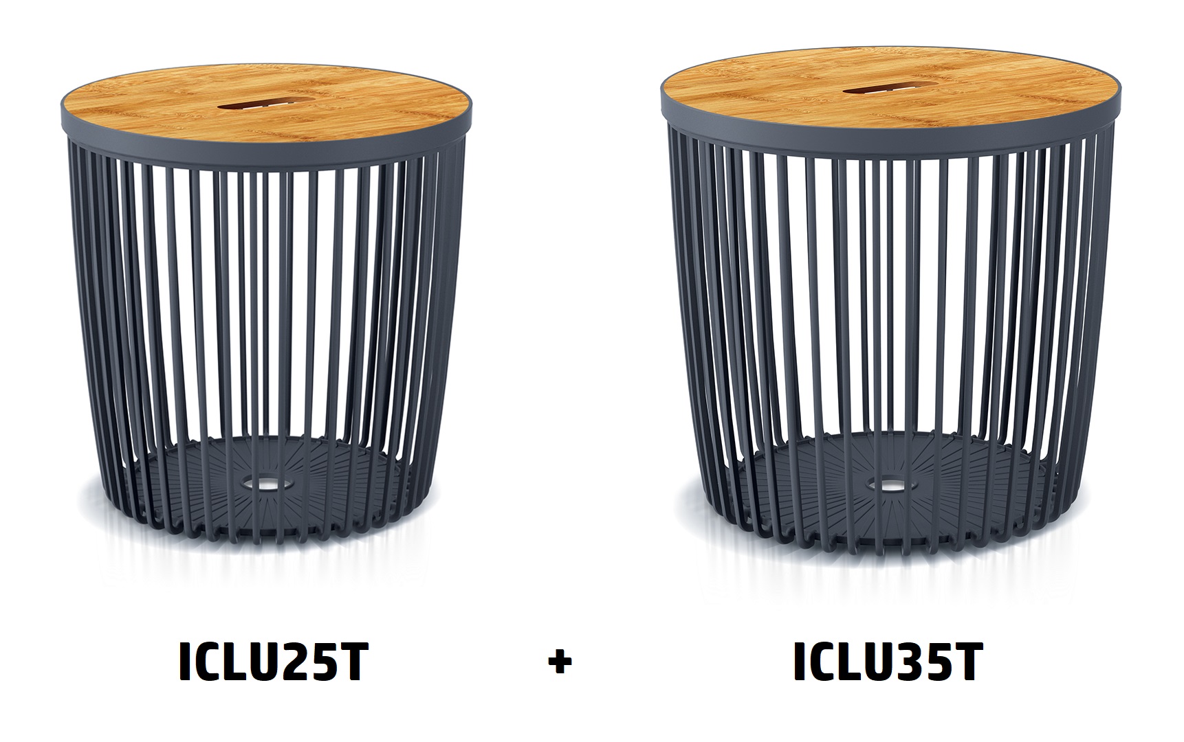 Sada 2 univerzálnych košov CLUBO s bambusovými vekami 25+35 l - farba: antracitová