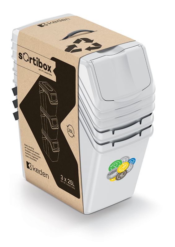 Sada 3 odpadkových košov SORTIBOX II - objem: 3x25 l, farba: popolavo šedá