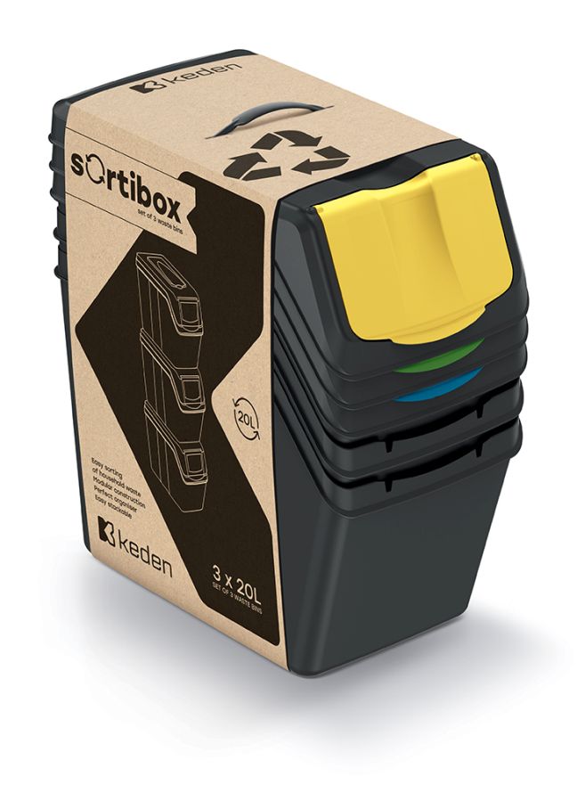 Sada 3 odpadkových košov SORTIBOX II - objem: 3x25 l, farba: recyklovaná čierna
