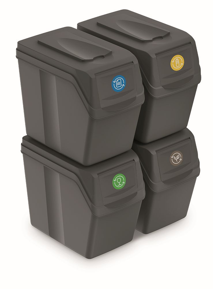 Sada 4 odpadkových košov SORTIBOX I - objem: 4x20 l, farba: sivý kameň