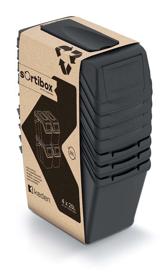 Sada 4 odpadkových košov SORTIBOX - objem: 4x 25 l, farba: recyklovaná čierna