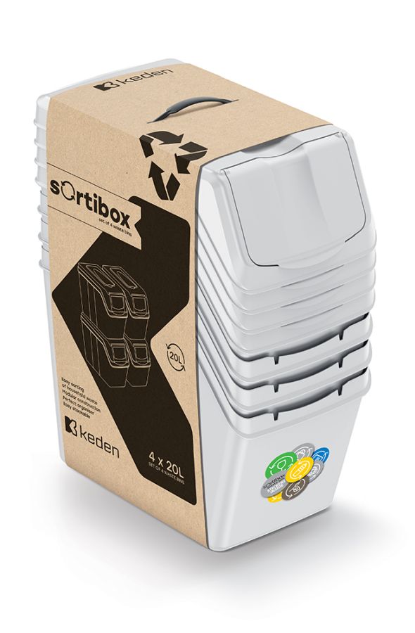 Sada 4 odpadkových košov SORTIBOX - objem: 4x20 l, farba: popolavá sivá