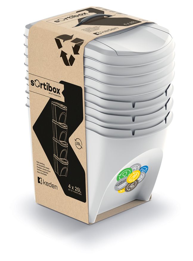 Sada 4 odpadkových košov SORTIBOX - objem: 4x25 l, farba: popolavo šedá