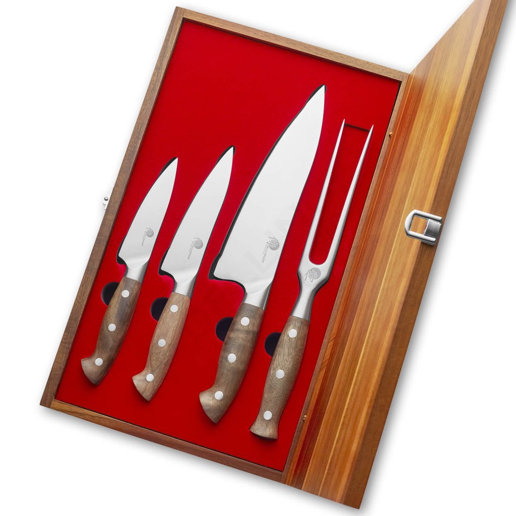 Sada nožov Dellinger 3 ks + vidlička v drevenej darčekovej krabici, Walnut