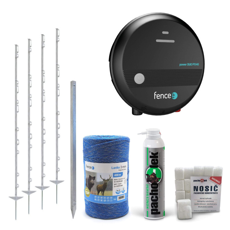 Sada pachový + elektrický ohradník pre ochranu úrody pred čiernou zverou - divoké prasa, jeleň, daniel - DUO zdroj - lanko 400 m