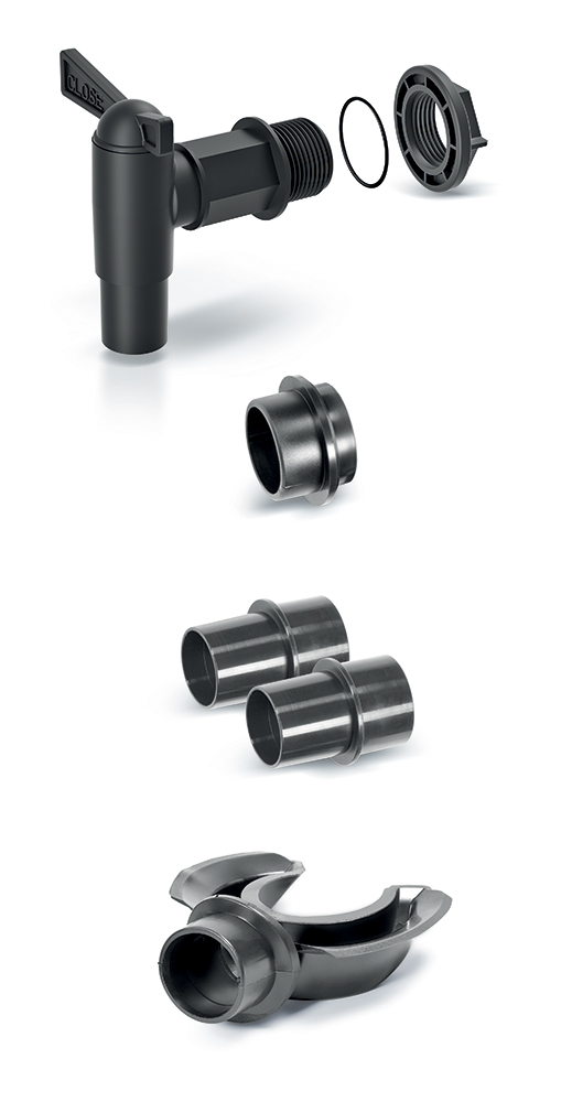 ICANS3 - Systém na prívod a odvod dažďovej vody zo suda. Kohútik je vybavený tesnením a maticou, vďaka čomu je kompatibilný so všetkými sudmi na dažďovú vodu Waterform.