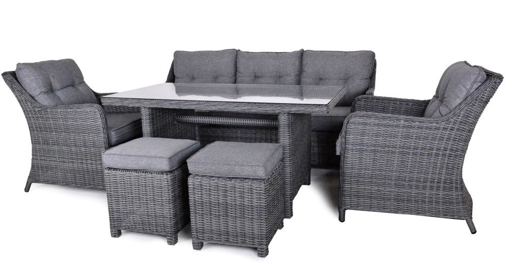 Luxusná súprava nábytku z umelého ratanu a hliníkového rámu. Hoci umelý ratan pripomína prírodný ratan, je oveľa odolnejší. Vo všeobecnosti je pružnejší a menej náchylný na poškodenie. záhradný nábytok z umelého ratanu sa ľahko udržiava a je vysoko odolný voči poveternostným vplyvom. Umelý ratanový nábytok sa nelúpe, nevznikajú na ňom nevzhľadné praskliny a je farebne stály po mnoho rokov. Ak nechcete, aby vaša obývacia izba bola rovnaká ako ostatné, ratanový nábytok je možným riešením, ako sa v interiéri odlíšiť. luxusný polyratanový nábytok má veľmi široké využitie. Je vhodný do vnútorných aj vonkajších priestorov, záhrad, terás, zimných záhrad, balkónov, kancelárií, zasadacích miestností, recepcií a iných nebytových a obytných priestorov. Nemusíte nič montovať ani zostavovať - nábytok je už pripravený na okamžité použitie. Vankúše sú odnímateľné. Luxusná súprava je vyrobená z kvalitného umelého ratanu, ktorý je odolný voči UV žiareniu a teplotám od +50 °C do -10 °C. Ratan: 6,5 mm polkruhová doska stola: 5 mm tvrdené sklo Sedáky:výplň-10 cm pena, látka-230 g/m2 polyester - spodné sedáky sú vybavené zipsom, ktorý umožňuje jednoduché pranie poťahu