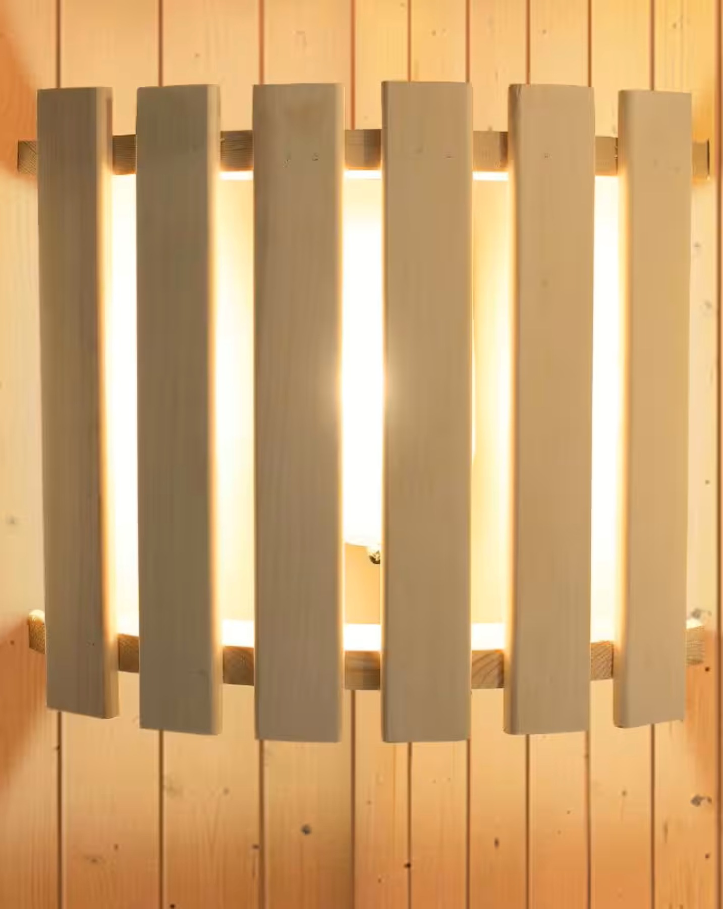 Moderné saunové svetlo z masívneho dreva prináša do vašej sauny dokonalú rovnováhu medzi útulnou atmosférou a dostatočným osvetlením. Správne svetlo je nevyhnutné na relaxáciu - nemalo by byť príliš jasné, ani príliš tmavé, a práve toto moderné svetlo vytvára ideálne podmienky. Svetlo sa skladá z masívneho dreveného tienidla, ktoré ladí s interiérom sauny, a jeho konštrukcia s medzerami medzi lamelami jemne rozptyľuje svetlo po celej kabíne, čím vytvára príjemnú, hrejivú atmosféru. Svetlo má rozmery š 33 x h 9 x v 28 cm, a je vhodné na rohovú montáž do akejkoľvek sauny Karibu bez toho, aby zaberalo priestor alebo rušilo pri sedení. Doprajte si relaxáciu v ideálnych svetelných podmienkach a užite si pocit pokoja a pohody s moderným saunovým svetlom.