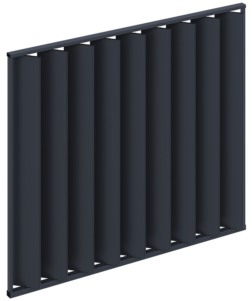 : RojaplastNa maximálne využitie bioklimatických pergol ponúkame aj príslušenstvo v podobe steny so zvislými sklopnými lamelami na zatienenie bioklimatickej pergoly a získanie väčšieho súkromia. Veľmi pevná a stabilná konštrukcia a lamely v antracitovej farbe RAL 7016.