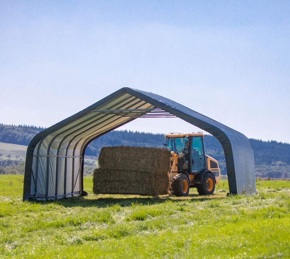 : SHELTERLOGICShelterLogic Run-In-Shed je všestranný a možno ho použiť napríklad ako pasienkový stan pre kone, ovce a kravy alebo ako skladovací stan na slamu, seno či stroje. Vďaka ľahkej montáži a demontáži je stan ideálny na sezónne využitie, ale samozrejme aj celoročné.
