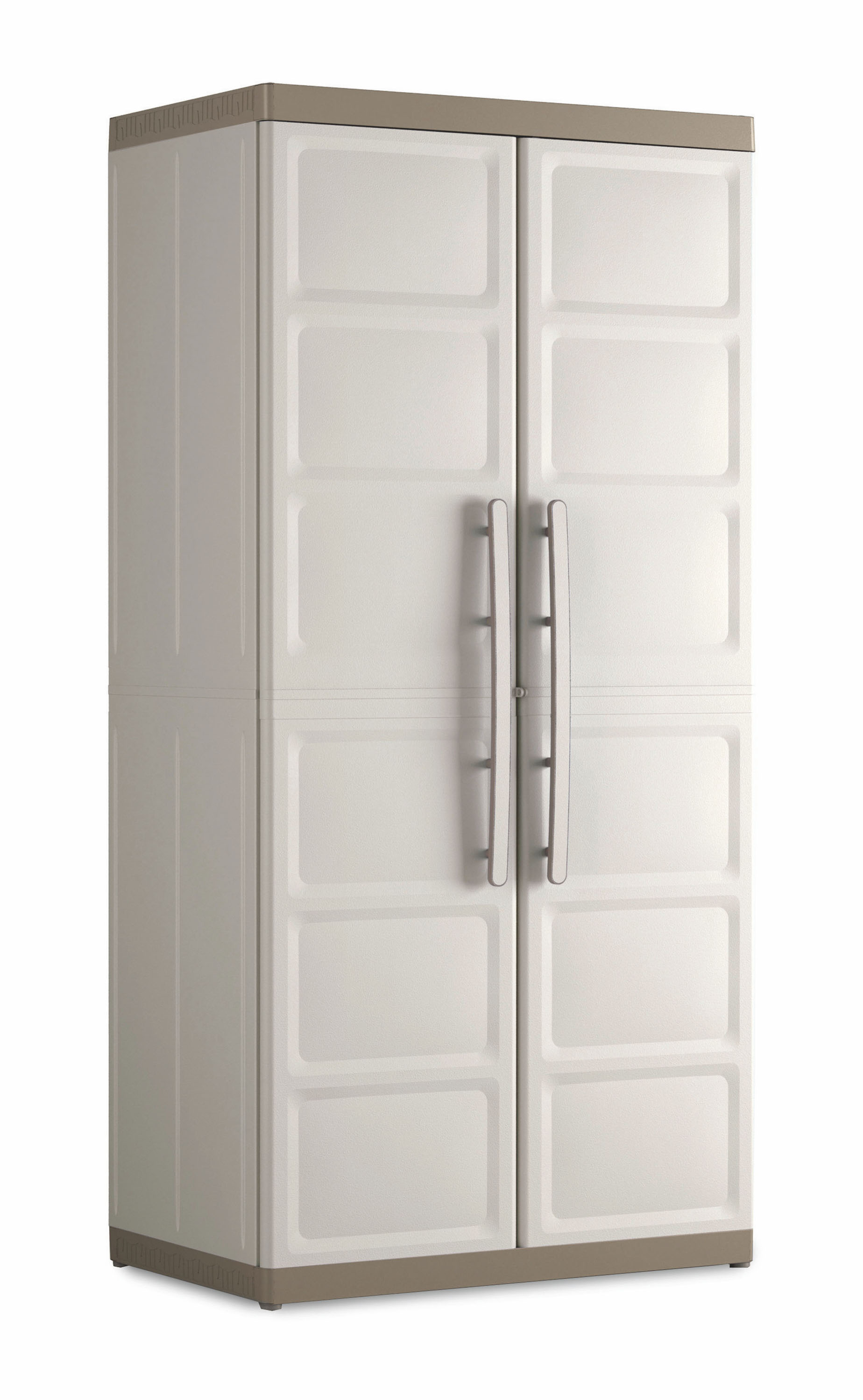 Skriňa obsahuje celkom 3 prídavné policu – každá s výraznou nosnosťou až 25 kg, ktorá príde vhod pre výrazne ťažšie predmety všetkého druhu. Možno ju teda využiť na skladovanie dielenského náradia či záhradníckych potrieb, kedy príde vhod na uloženie náčinia s dlhou násadou, ktoré by sa inam nevošlo. Vďaka svojmu prevedeniu v univerzálnej béžovej farbe zapadne do každého priestoru bez ohľadu na jeho konceptuálny štýl.
