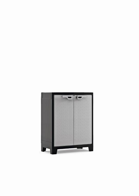 : KeterBezúdržbová skriňa pre multifunkčné využitie v garážach, dielňach aj domácnosti, jednoduchá montáž 2 poličiek, nosnosť jednej police 30 kg, možnosť uzamknutia, vysoká odolnosť. Kvalitný plast. Šedá a čierna.
