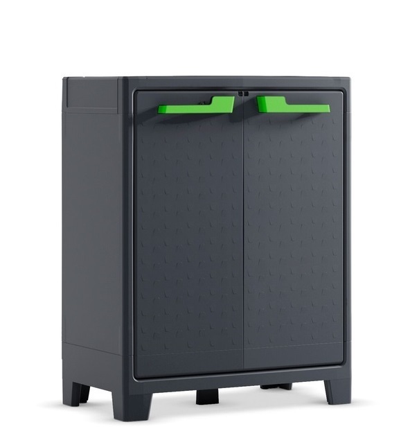 Luxus mať všetko po ruke v záhrade alebo v dielni! S vonkajšou skriňou MOBY budete mať všetko potrebné priamo v záhrade, garáži alebo dielni. Skriňa je vyrobená z kvalitného plastu, takže nemusíte riešiť problémy s koróziou. Keď k dobrým vlastnostiam plastu pridáte nespočetné množstvo skvelých funkcií, získate regálovú skriňu MOBY - robustnú a dobre vyzerajúcu ochranu pre záhradné náradie, hadice, ako aj deky a všetko ostatné, čo v záhrade potrebujete. Samozrejme, hodí sa aj do dielne alebo garáže - kvalitné kovové pánty zabezpečujú stálu funkčnosť otvárania a pevné uchytenie dverí - police sa dajú ľahko nastaviť vďaka SLO (Security Lock Off), bezpečnostnému zámku - skrinka pevne stojí na nastaviteľných nohách, takže si môžete ľubovoľne nastaviť ich výšku - pre ešte väčšiu stabilitu je spodná časť skrinky vybavená piatou nohou - vybavená pätkami s visiacim zámkom