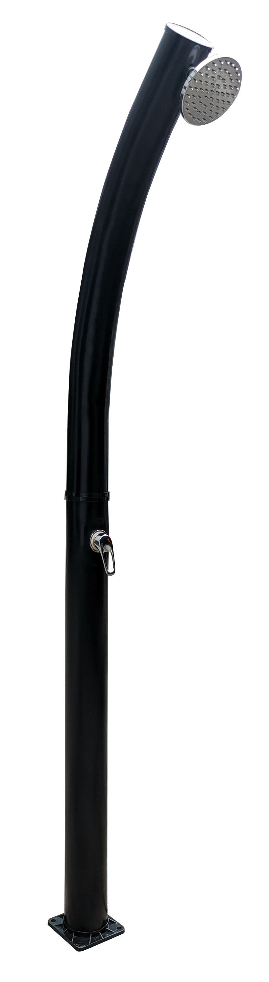 : CFElegantná solárna sprcha, objem nádrže 20 l, výška 215 cm, priemer veľkej sprchovej hlavice 15 cm, hmotnosť 6 kg. Vyrobená z PVC odolného voči UV žiareniu. Rýchlospojka na hadicu a montážne skrutky sú súčasťou dodávky.