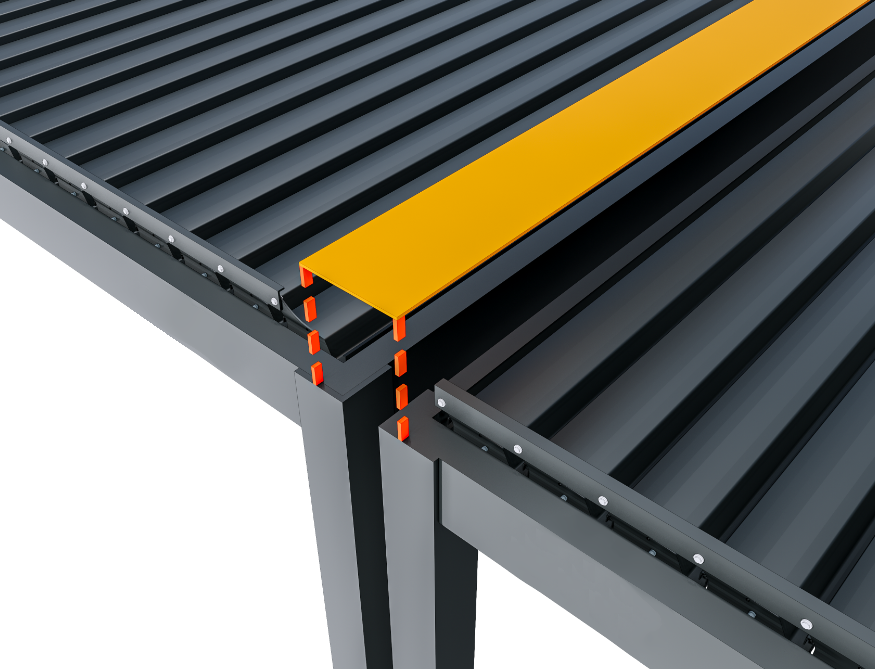 Súprava na spojenie dvoch pergol LANITPLAST BIOCLIMATIC PREMIUM PLUS dohromady. Pokiaľ chcete spájať ďalšiu pergolu, je nutné prikúpiť ďalšiu sadu.