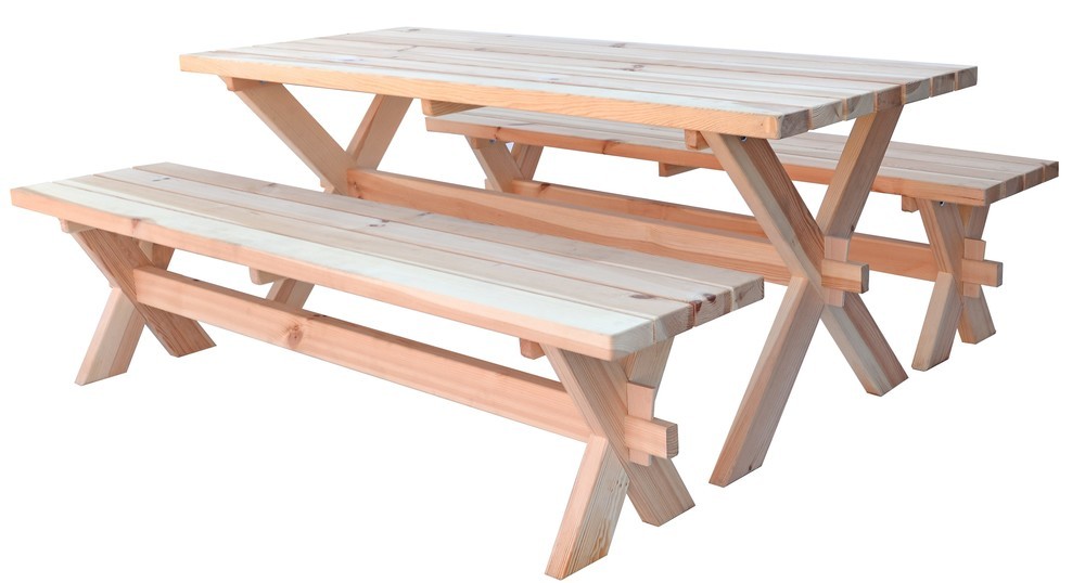Záhradný set OLD je vyrobený z kvalitného borovicového dreva. Extra pevná konštrukcia s hrúbkou dreva 4 cm. Vďaka použitému materiálu a jeho spracovaniu je lavička veľmi odolná a kvalitná. Prírodné prevedenie umožňuje súpravu natrieť a ošetriť podľa vašich predstáv. Certifikát FSC zaručuje, že použité drevo pochádza z trvalo udržateľne obhospodarovaných lesov, v ktorých sa dodržiavajú prísne ekologické a sociálne požiadavky.