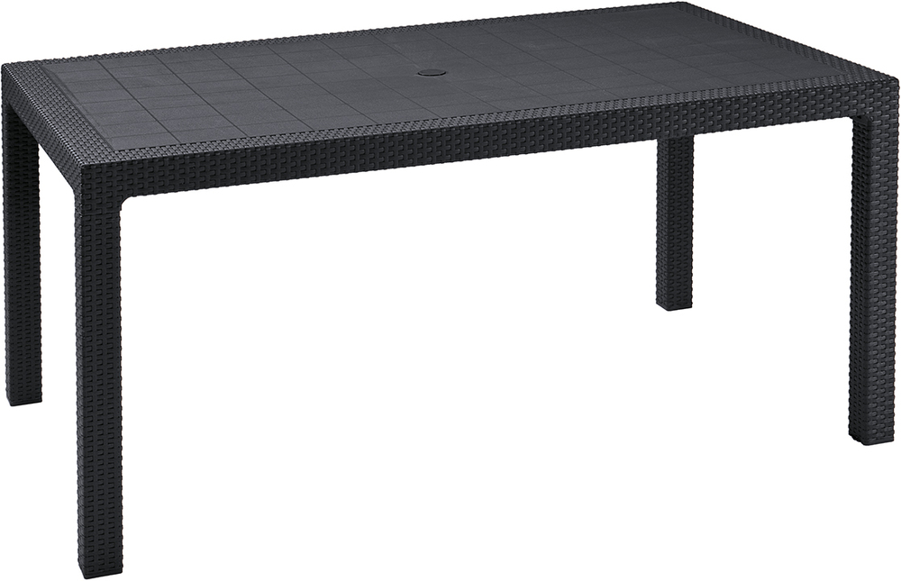 : KeterObdĺžnikový plastový stôl od spoločnosti KETER. Moderný vzhľad - imitácia ratanovej štruktúry.