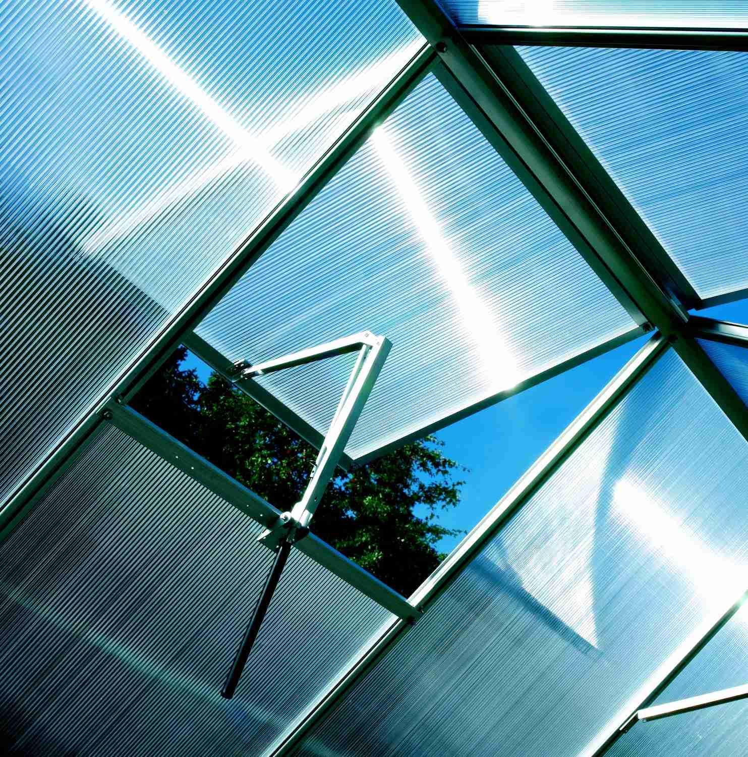 Ventilačné strešné okno s rozmermi 60 x 60 cm. Ide o konštrukciu okna, presklenie získate vyrezaním príslušného dielu polykarbonátovej strechy pre okno.