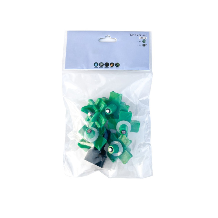 : AgrofortelSúprava na výrobu napájačky / 5 ks Súprava na výrobu napájačky od značky AGROFORTEL predstavuje jednoduchý spôsob, ako premeniť bežnú nádobu alebo hadicu na efektívnu napájačku. Tento jednoduchý systém umožňuje rýchlu inštaláciu a je ideálny pre každého chovateľa.