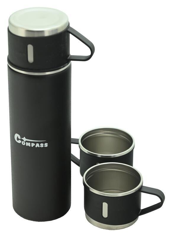 10.15 Termoska, objem 500 ml, 3 šálky v sade, nerezová oceľ SUS304, vákuová izolácia, viečko s tlačidlom.