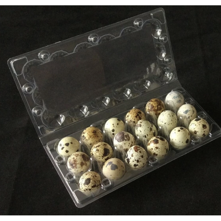 Určený pre 18 ks prepeličích vajec. Možnosť viacnásobného použitia. Blister je pri uzavretí opatrený vetracím prieduchom cca 10 mm veľkým. Farba čisto číra - transparentné.