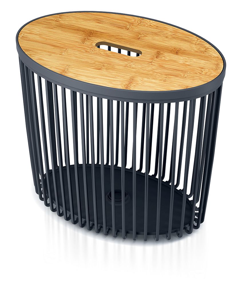 Univerzálny oválny kôš CLUBO s bambusovým vekom 44 cm - farba: antracitová