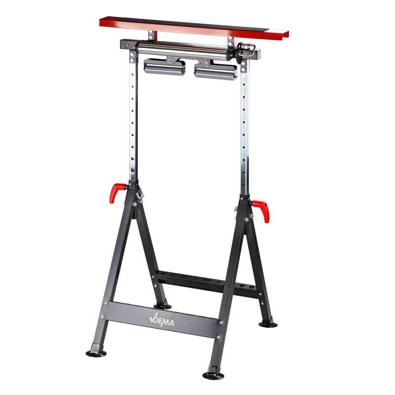 : DEMAMultifunkčný, výškovo nastaviteľný valčekový stojan pre univerzálne využitie v dielni alebo garáži. Podstavec poskytuje desať-polohové nastavenie výšky. Pracovná výška stojana sa tak dá rýchlo a bezpečne prispôsobiť každej situácii. Keď sa stojan nepoužíva, alebo prepravuje, nezaberá veľa miesta.