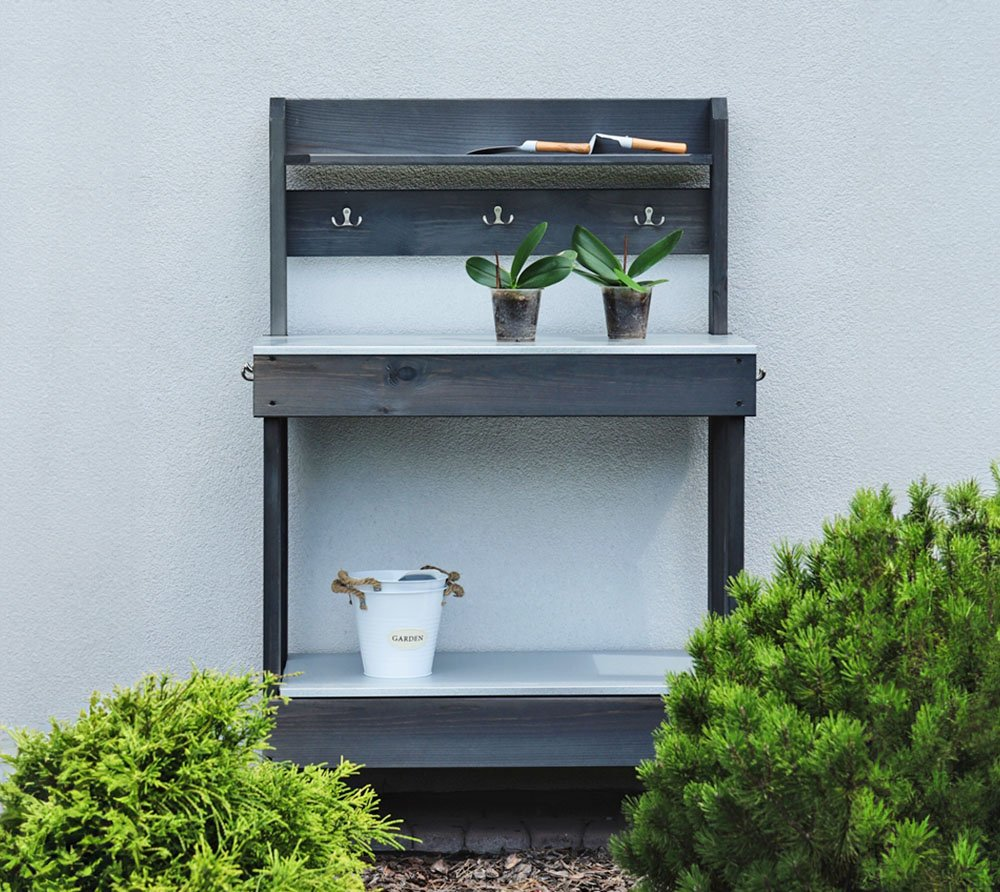 : WestmannModerný všestranný pomocník pre vašu záhradu - sádzací stôl z masívneho dreva Fabia od Westmann boduje s 2 pozinkovanými pracovnými plochami, malou policou a 2 praktickými háčikmi.