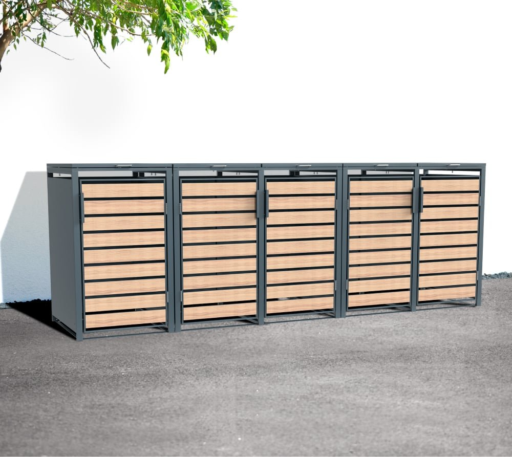 1210.57 Westmann Lacina oceľový box na odpadkové koše 5x240 litrov, antracit 80 x 332 x 116 cm, WMJGBC212-5